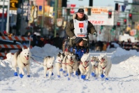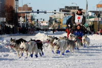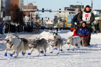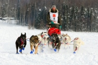 Musher Blake Matray, 41, from Two-Rivers, Alaska. A pilot for the Alaska Air National Guard, Blake Matray is participating in the 37th Iditarod. Leaving his state-of-the-art tanker jet behind, he's at the helm of a sled powered by a team of 14 dogs... That's what a Musher needs to endure the 1,000 miles of the toughest race on earth. |