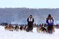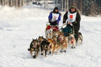 Musher Rachael Scdoris, from Bend, Oregon. Rachael is 24 as she enters the 2009 Iditarod, her 3rd actual participation. She dropped out of the race in 2008 after 11 days on the trail, but this year, she finished in 45th place. The toughest race on Earth is even tougher for Rachael. Just imagine going on a 1000 mile journey to Nome on a sled, with your eyes closed. Although it's not quite like that for Rachael, the analogy is close... In fact, Rachael is legally blind with a 20/200 vision. |