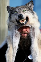 hides a big smile during the festivities at the Annual Anchorage Fur Rondy.