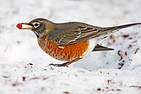 American Robin Eating Berry