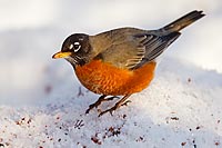 American Robin on the snow