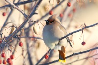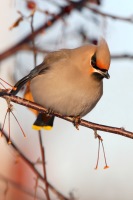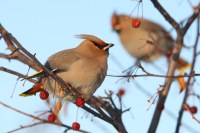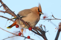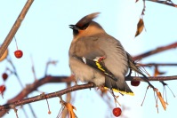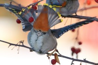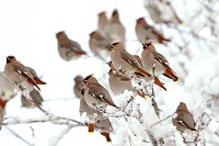 Luckily for this flock of Bohemian Waxwings, there were still fruits available during the Alaskan winter.