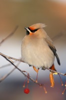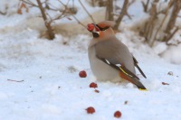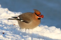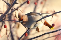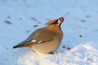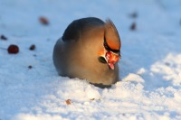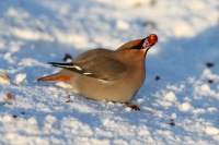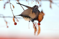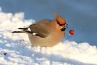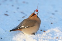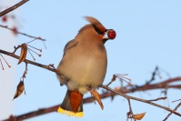 Glutonous Bohemian Waxwing Gulping a Fruit |