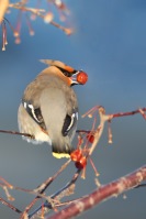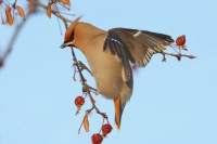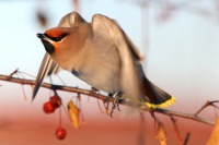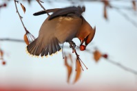 Here comes another Waxwing juggler putting on a show with his dexterious beak.