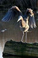 With their long slender legs, they wade the marshes in search of small fish, frogs or crustaceans. While hunting,