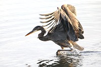 Great Blue Herons are large wading birds with a blueish plummage. They can be found throughout North America during the summer months.