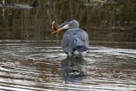 the Herons walk very slowly in the shallow waters, but as soon as a prey has been located, they suddenly lurch their long neck forward in