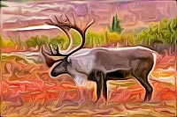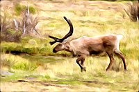 Caribou usually roam the Alaska landscape in large herds. This lone Caribou with majestic antlers is spotted on the colorful tundra during the Fall.