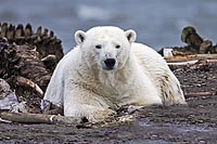 Below: A large Polar Bear enjoys a sunny day in the Arctic.