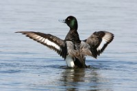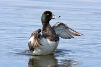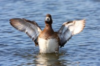 This Greater Scaup flaps its wings like a Ballet Dancer. |