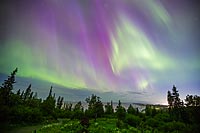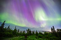 CIR producing intense Aurora colors, including a mixed pattern of green, purple and blue streaks of lights across the night sky.