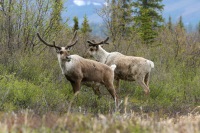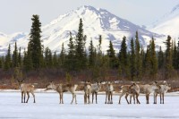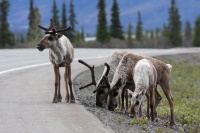 Caribou often gather in herds. A few small groups are seen here in various locations in interior Alaska.
