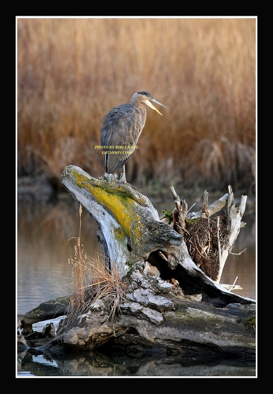 The Blue Heron seemed to have chosen this tree stump as a safe harbor