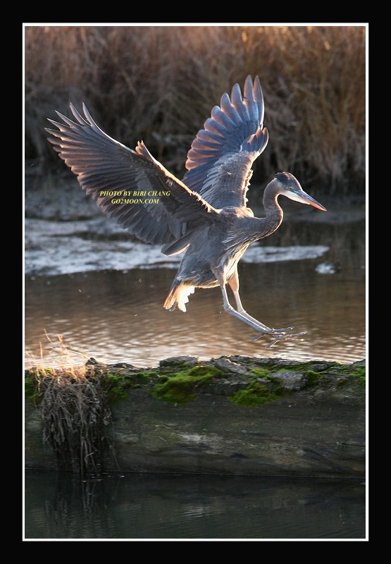 Throughout the day, the Great Blue Heron was hopping along the tree trunk