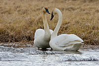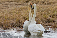 Trumpeter Swan Courtship in the Spring, their neck making a heart shape