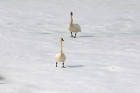 Swans walking on the snow.