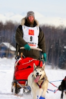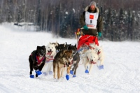 Musher Blake Matray, 41, from Two-Rivers, Alaska. A pilot for the Alaska Air National Guard, Blake Matray is participating in the 37th Iditarod. Leaving his state-of-the-art tanker jet behind, he's at the helm of a sled powered by a team of 14 dogs... That's what a Musher needs to endure the 1,000 miles of the toughest race on earth. |
