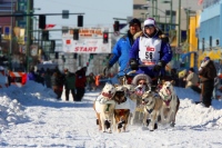 Musher Rachael Scdoris, from Bend, Oregon. Rachael is 24 as she enters the 2009 Iditarod, her 3rd actual participation. She dropped out of the race in 2008 after 11 days on the trail, but this year, she finished in 45th place. The toughest race on Earth is even tougher for Rachael. Just imagine going on a 1000 mile journey to Nome on a sled, with your eyes closed. Although it's not quite like that for Rachael, the analogy is close... In fact, Rachael is legally blind with a 20/200 vision. |