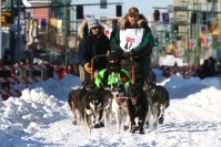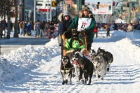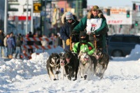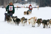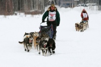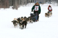 Musher Sonny Lindner, of Two-Rivers, Alaska. Sonny is a veteran Iditarod musher, having participated to 14 of them. He finished 5 times in the top 10, with a best finish in 2nd place in 1981, and 3rd in 1979. In the 2009 Iditarod, Sonny finished in 11th place, a mere 12 minutes behind Canadian musher Hans Gatt. |