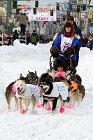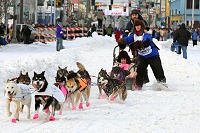 Jane Faulkner on the first day of the Iditarod, at the ceremonial race start in Anchorage.