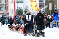 Photos of Wattie McDonald and his dog team at the ceremonial race start in Anchorage.