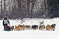 to abandon the race in Kaltag due to a muscle strain. She had 12 dogs on her team.