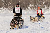 Aaron Burmeister followed by Ryne Olson on the Iditarod Trail.
