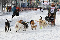 Trent Herbst Dogs in action at the Ceremonial race start downtown Anchorage.