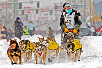 Colleen Robertia with Iditarider at the Ceremonial race start downtown Anchorage.