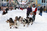 Ramey Smyth with Iditarider at the Ceremonial race start downtown Anchorage.