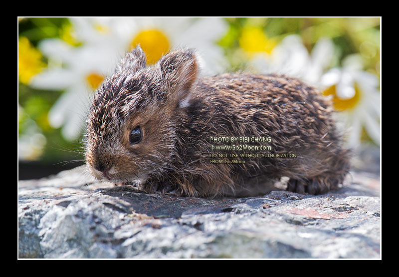 Baby Snowshoe Hare Close-up in Flower Field